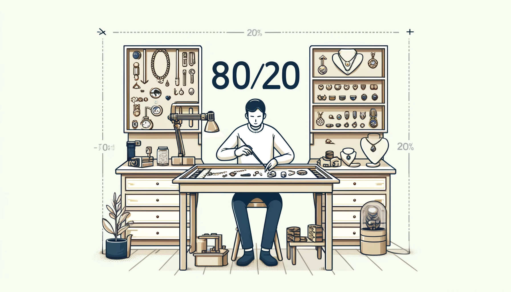 - In jewelry making, 20% of activities, such as design and assembly, typically contribute to 80% of the business's output. Focusing on streamlining these essential processes can increase overall productivity and quality.